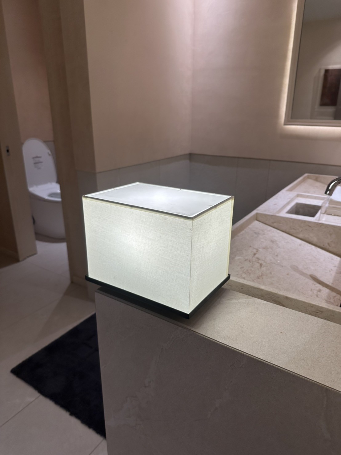 燈體外層是由鋼材鑄造,再經由防鏽處理和烤漆而成,內層是米白色TC布罩製作完成。