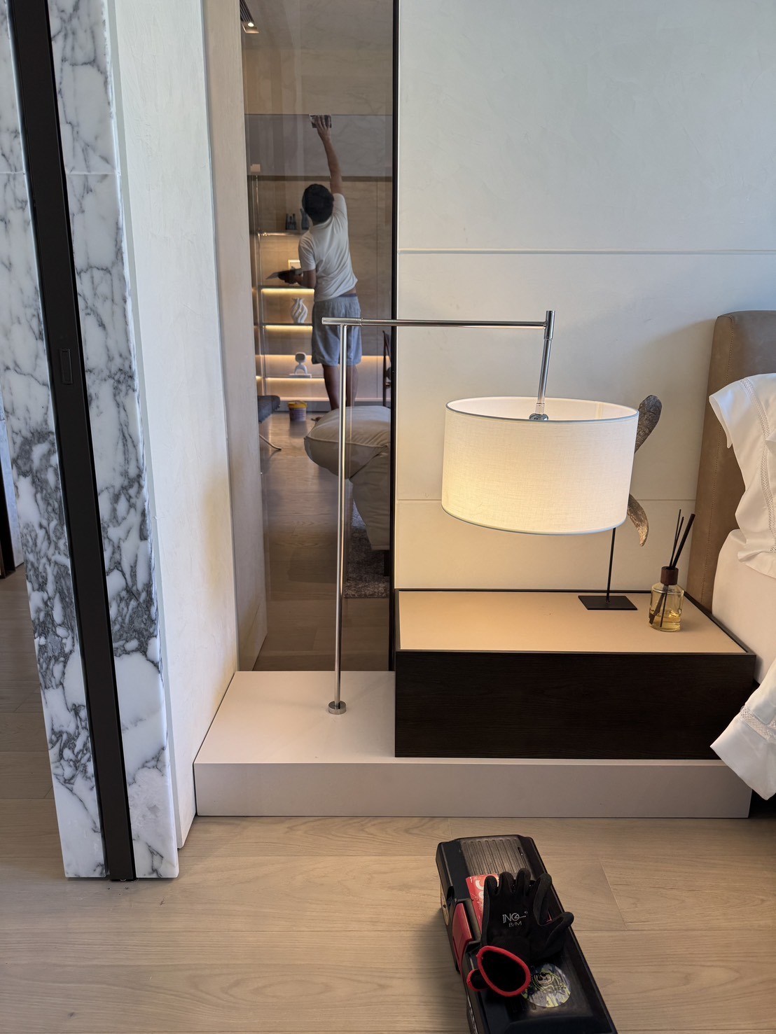 燈體外層是由鋼材鑄造,再經由防鏽處理和烤漆而成,內層是米白色TC布罩製作完成。