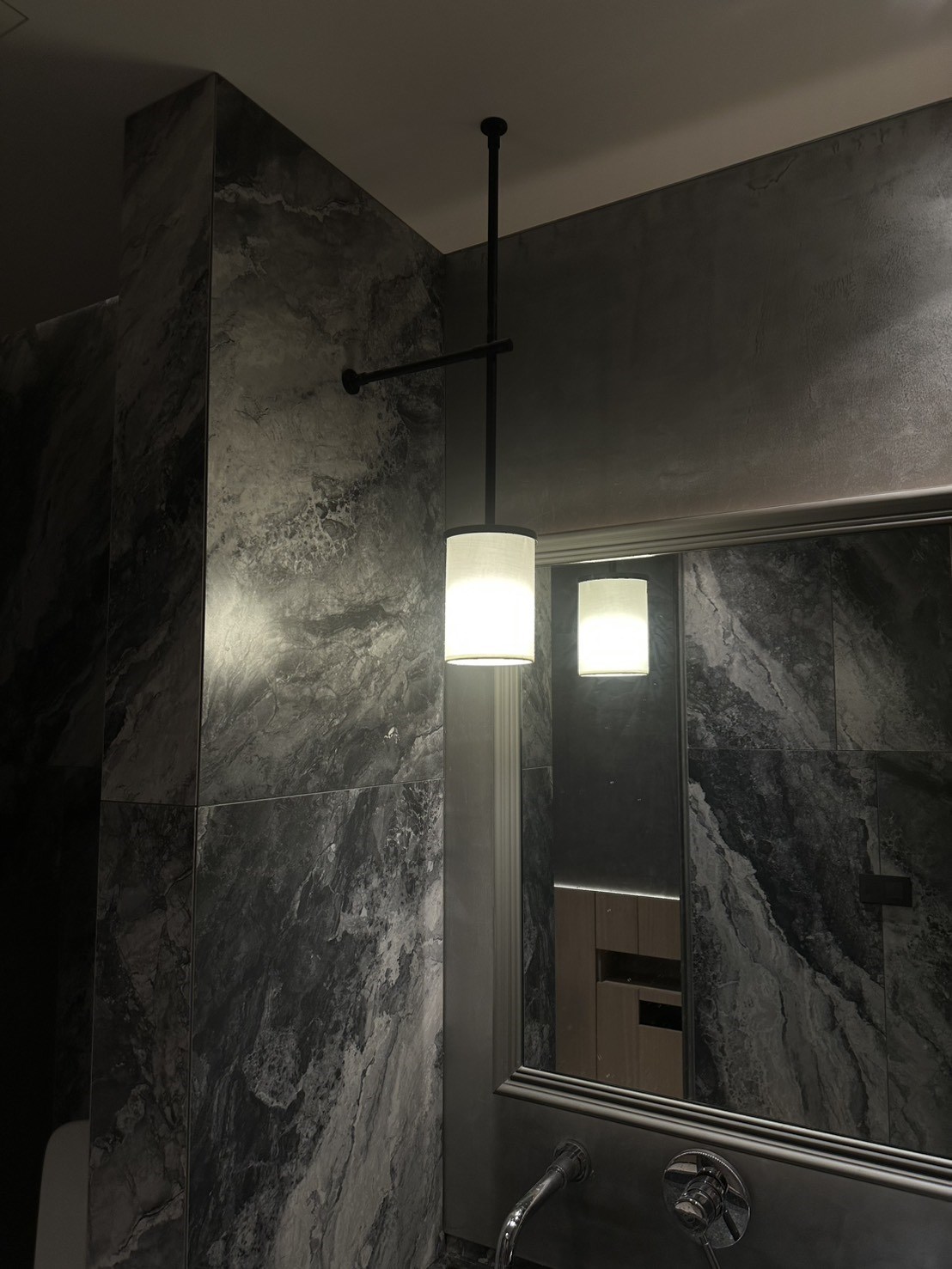 燈體外層是由鋼材鑄造,再經由防鏽處理和烤漆而成,內層是米白色TC布罩製作完成。
